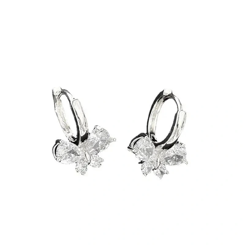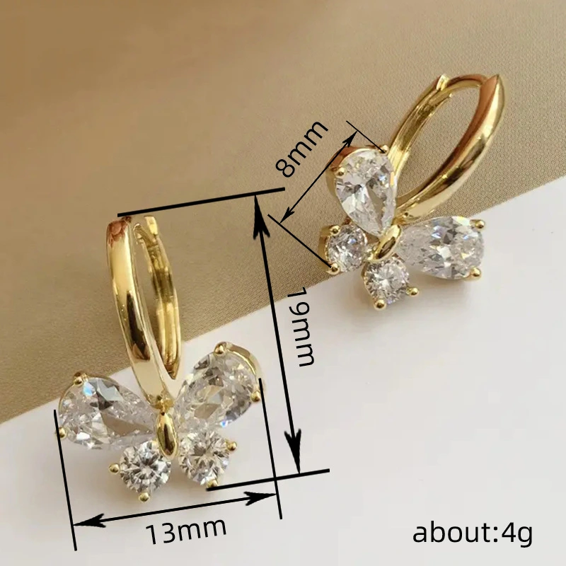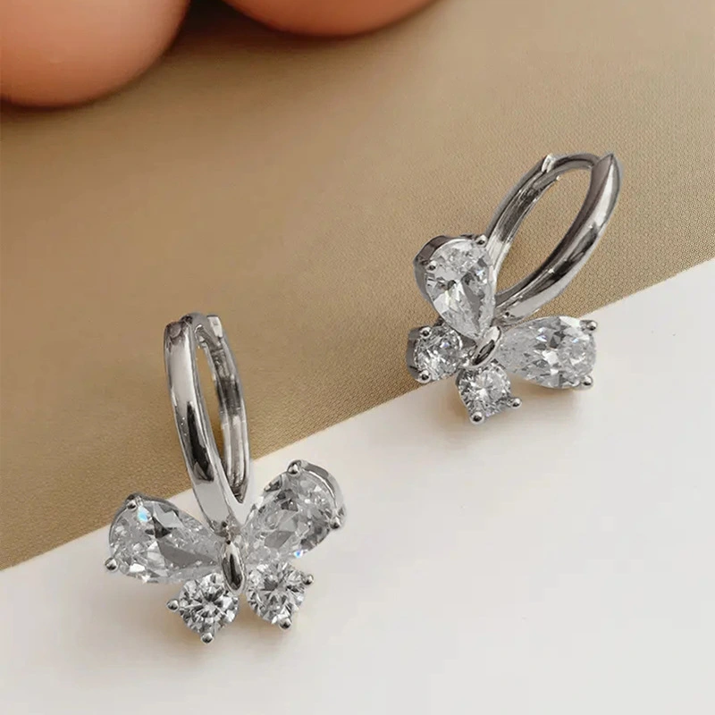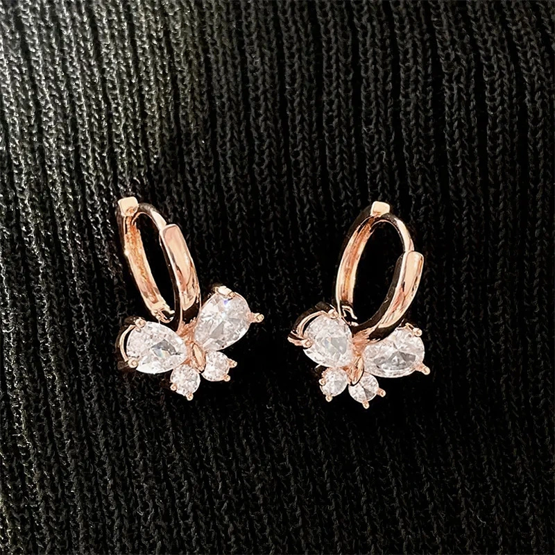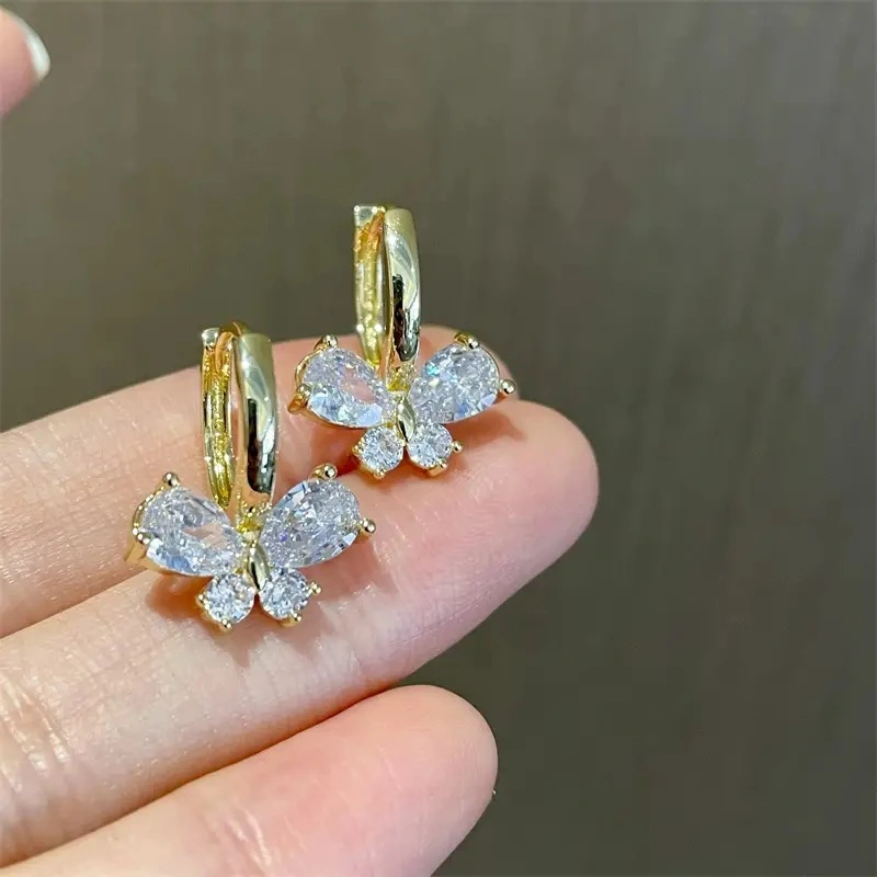 Pendientes de mariposa exquisitos y elegantes para mujer con incrustaciones de circonitas, clips de oreja brillantes y dulces, pendientes diarios para mujer.