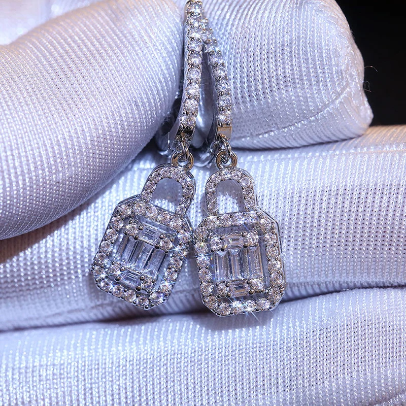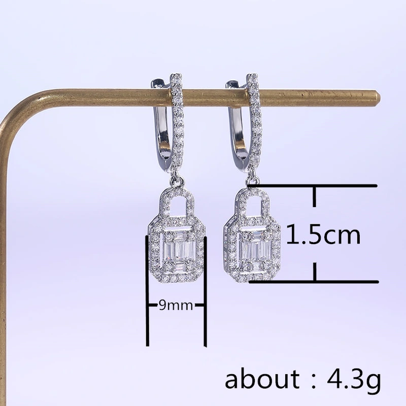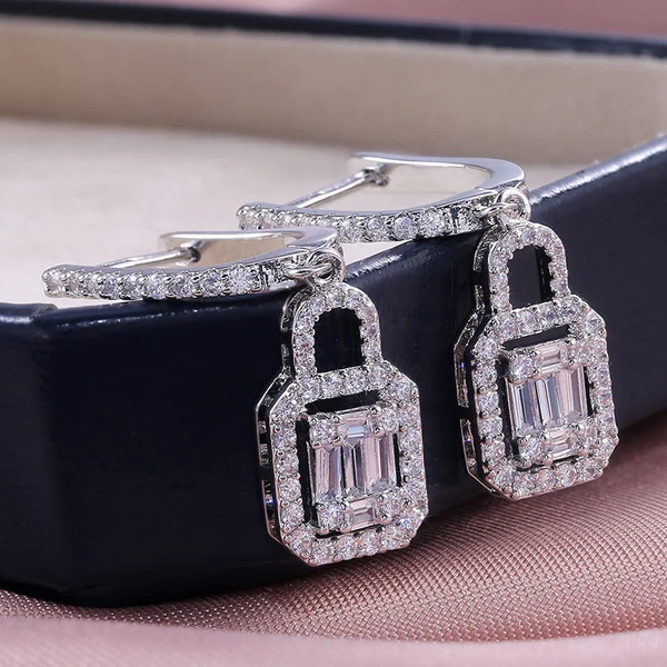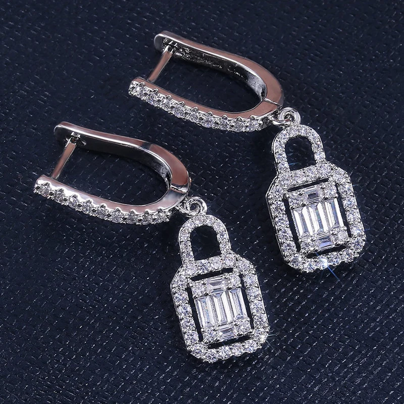 Pendientes de mujer exquisitos con forma de T y circonita cuadrada con incrustaciones de circonita, pendientes sencillos con forma de T y circonitas.