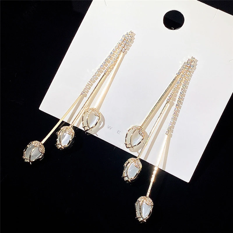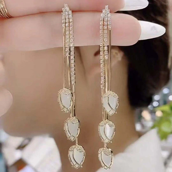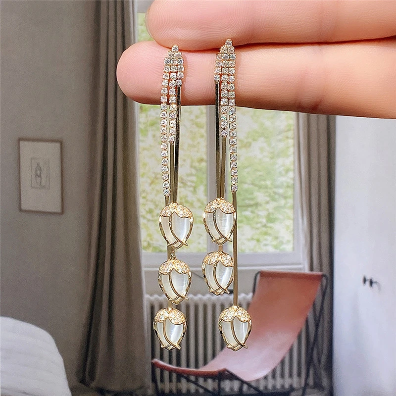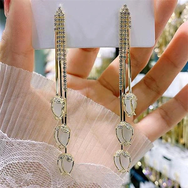 Pendientes de nueva tendencia 2022 con borlas de tulipán con microincrustaciones, pendientes antiedad de moda para mujer, pendientes largos