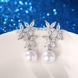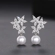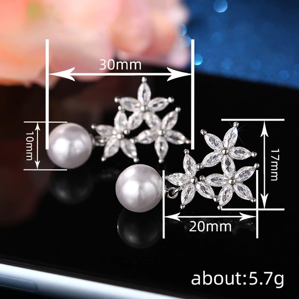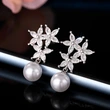 Pendientes de nuevo estilo para mujer, perlas de imitación de flores, joyas de princesa, vestido de noche de alta gama estilo boda.