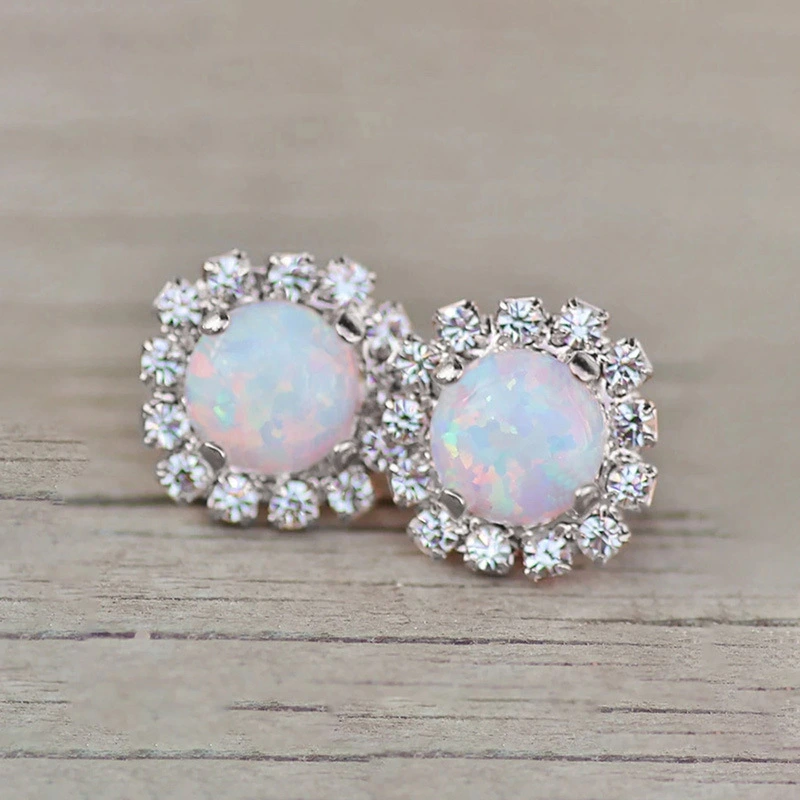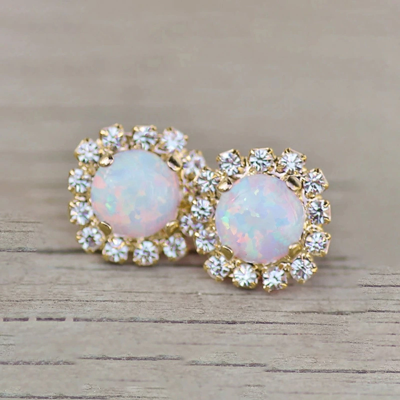 Pendientes de ópalo de imitación de cristal brillante para mujer, joyas de circonita con microincrustaciones, pendientes elegantes y sencillos y exquisitos.