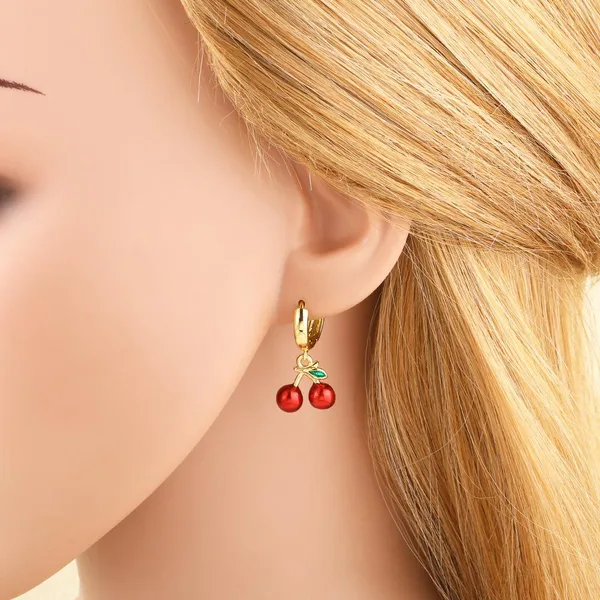 Pendientes de oro de 18 quilates chapados en cobre con forma de cereza, estilo europeo y americano, para mujer, modelo ERS28.