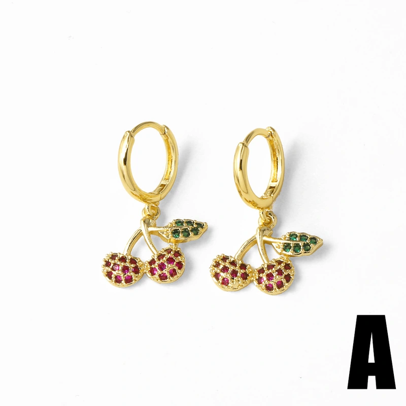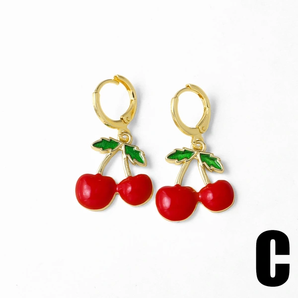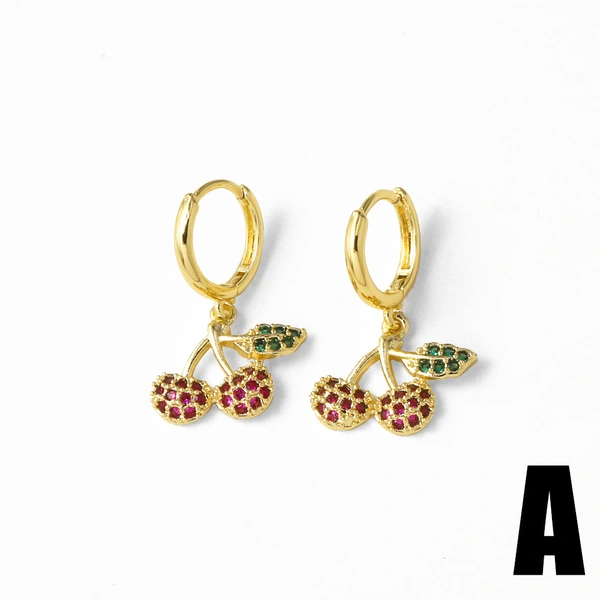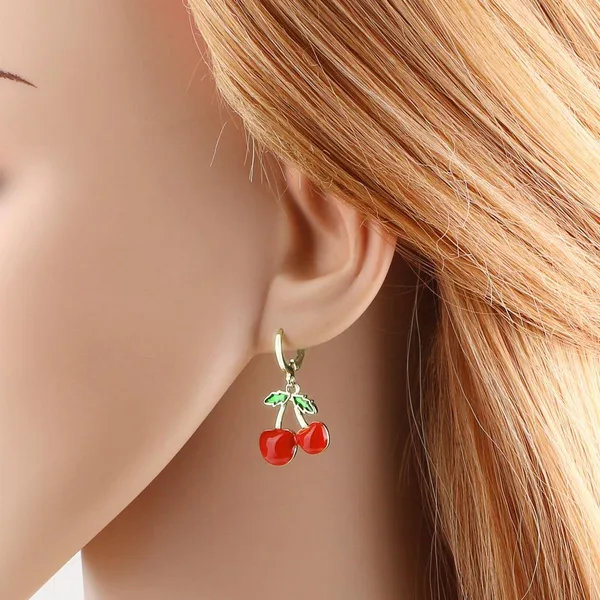 Pendientes de cereza y fruta, sencillos y modernos, de estilo europeo y americano, chapados en oro, para mujer, era237