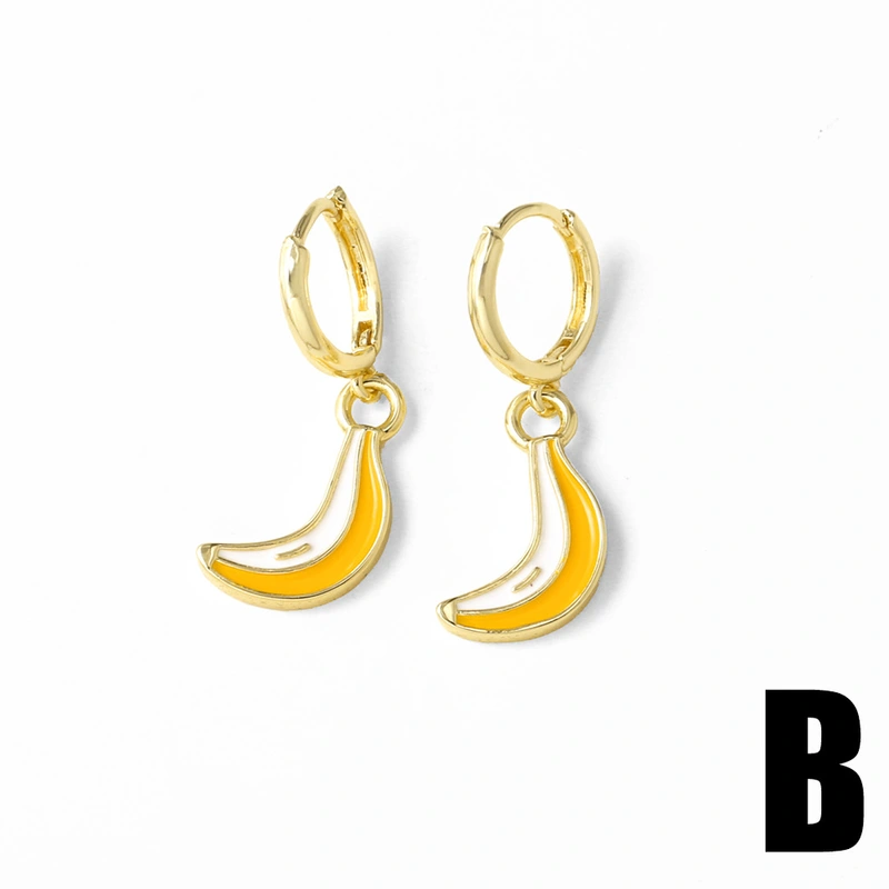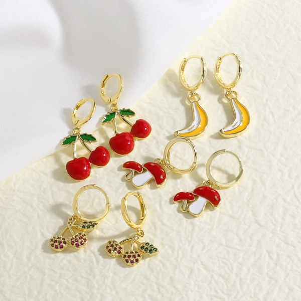 Pendientes de oro auténtico chapados en cobre con forma de gota de aceite, fruta, fresa y seta, ERS75