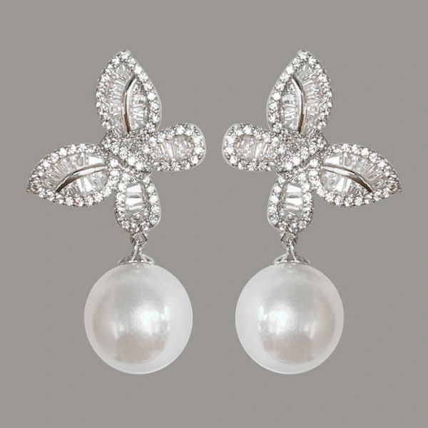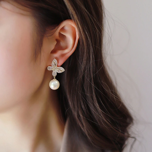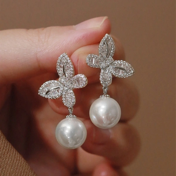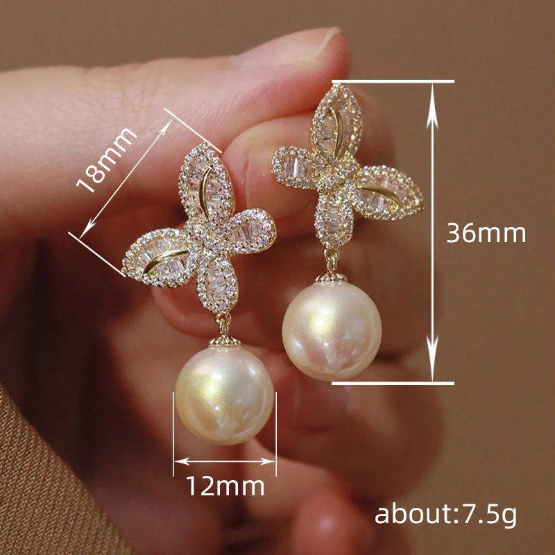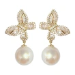 Pendientes de perla de imitación de circonita con incrustaciones de mariposa para mujer, elegantes y modernos, estilos populares japoneses y coreanos.