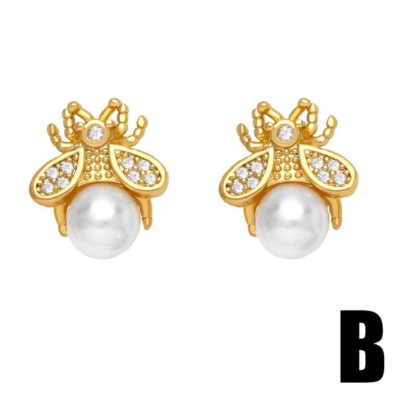 Pendientes de perla, panda, fresa y cereza, muy populares en Europa y Estados Unidos, chapados en oro, para mujer, ern22