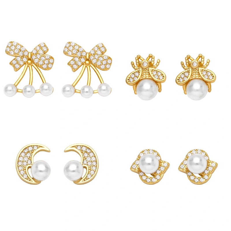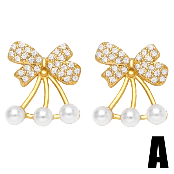 Pendientes de perlas con lazo de diamantes, estilo moderno, sencillos y pequeños, pendientes femeninos de moda era015