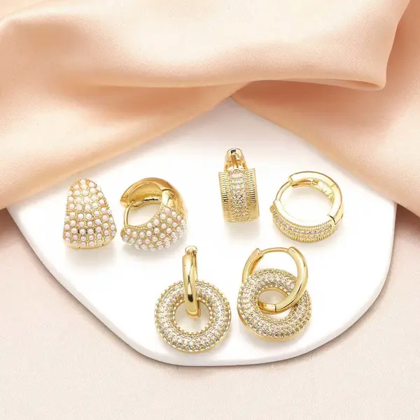 Pendientes de perlas de gran venta en Europa y Estados Unidos, chapados en cobre y oro auténtico, con circonitas redondas, ERS11.