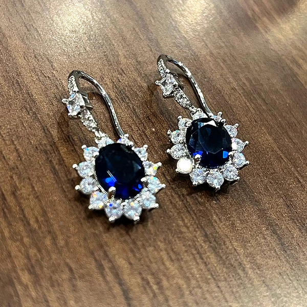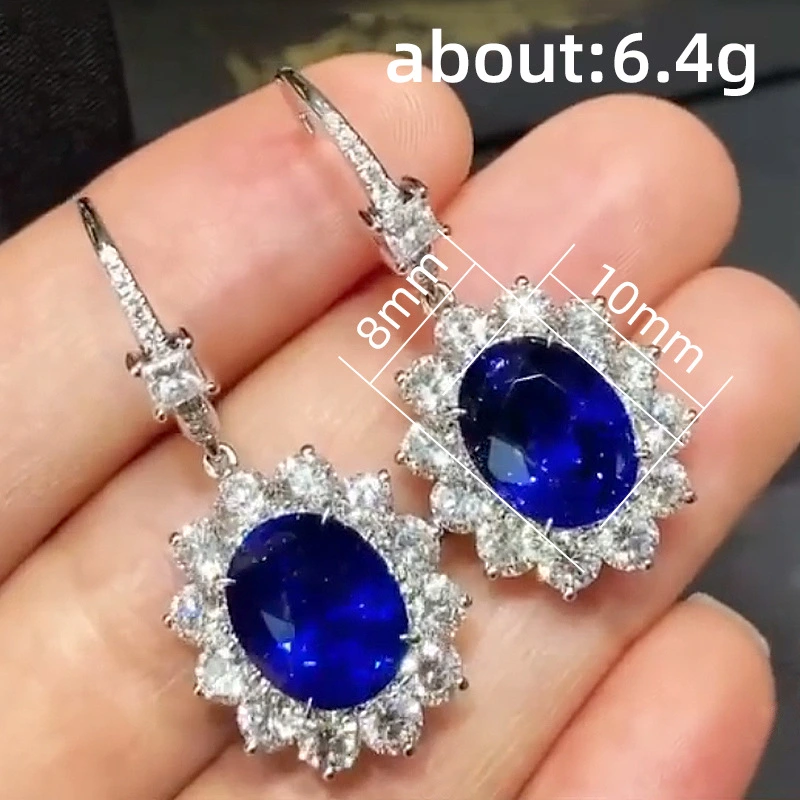 Pendientes de piedras preciosas de colores retro exóticos europeos y americanos, pendientes de flor de zafiro simulado, empaquetados individualmente.