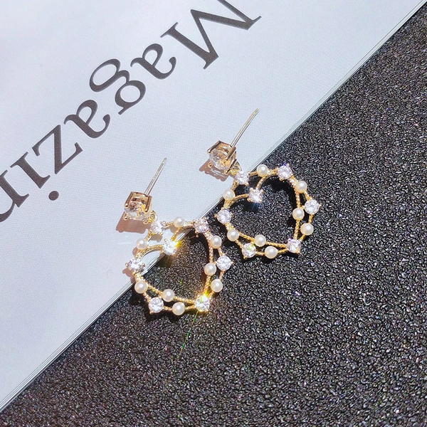 Pendientes en forma de corazón de nuevo estilo 2021, estilo dulce y fresco, pendientes de diamantes de amor, pendientes de perlas de imitación versátiles