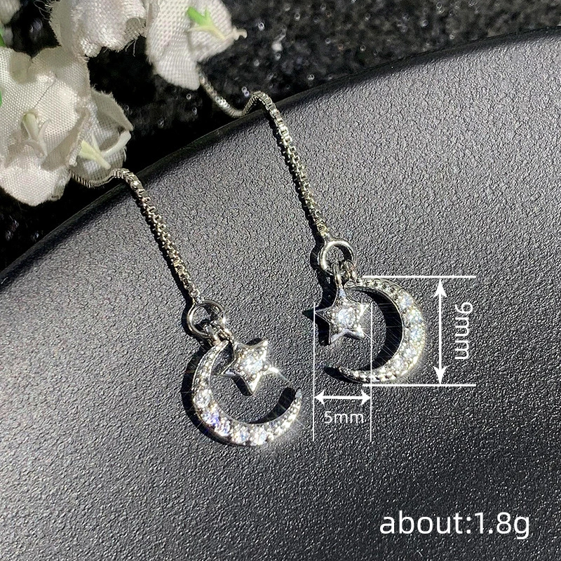 Pendientes largos con borlas para mujer, cadena de estrella y luna, diseño dulce.