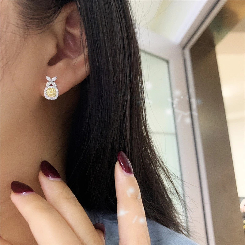 Pendientes nuevos 2021 de estilo lujoso y ligero con incrustaciones de diamantes amarillos y circonitas para mujer, pendientes populares europeos y americanos para mujer.