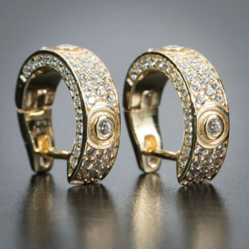 Pendientes para hombre europeos y americanos, venta al por mayor, nuevo estilo lleno de circonitas, pendientes de moda hip-hop para hombre.