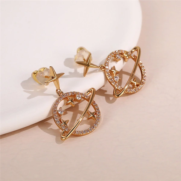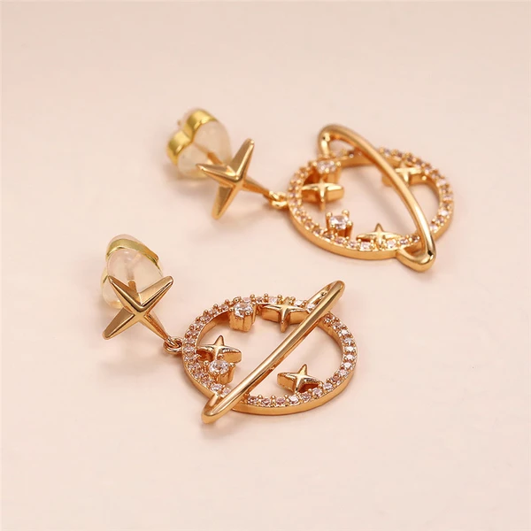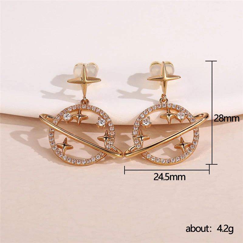 Pendientes rojos de red con nuevo estilo y temperamento moderno, pendientes colgantes de planeta de alta gama, pendientes de estrella con diseño de nicho.