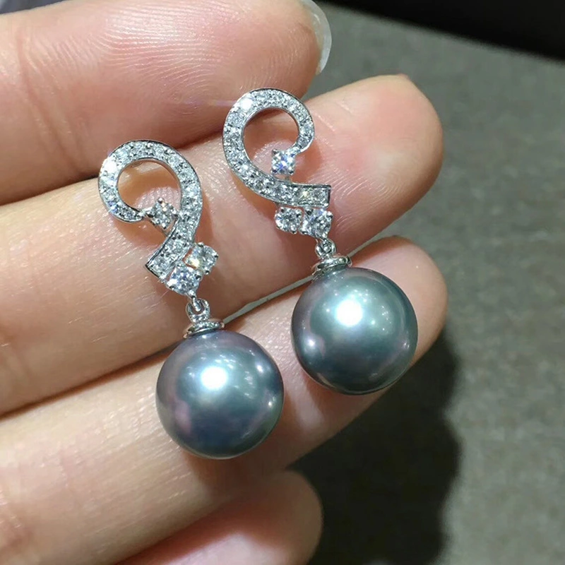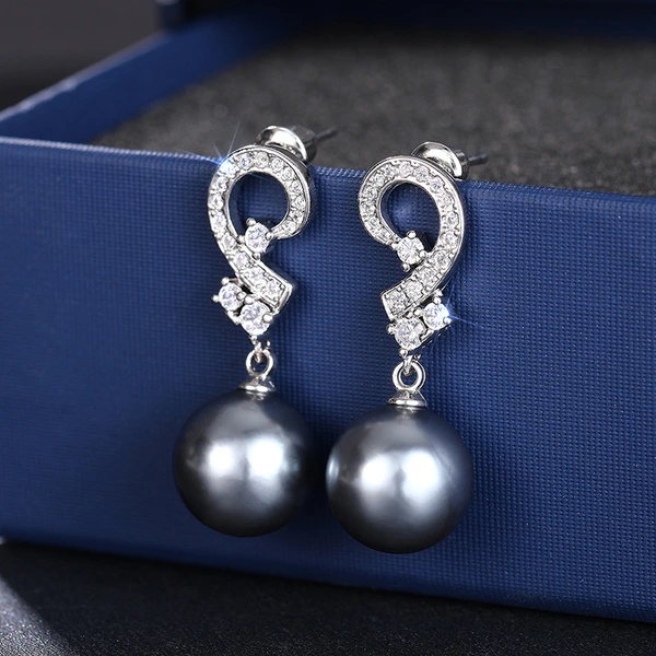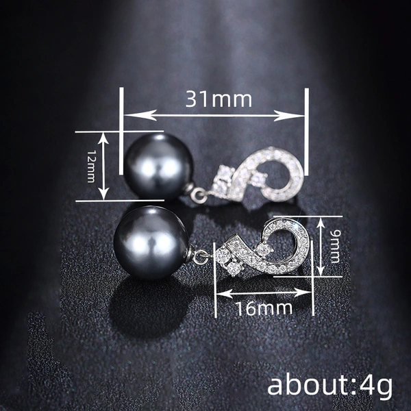 Pendientes simétricos nuevos del fabricante para mujer, perlas de imitación, joyería negra oscura de lujo clara, venta directa de fábrica de nicho de alta gama.