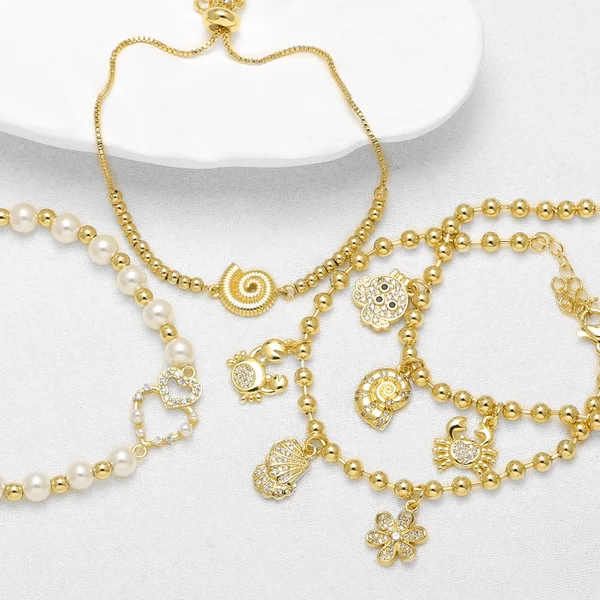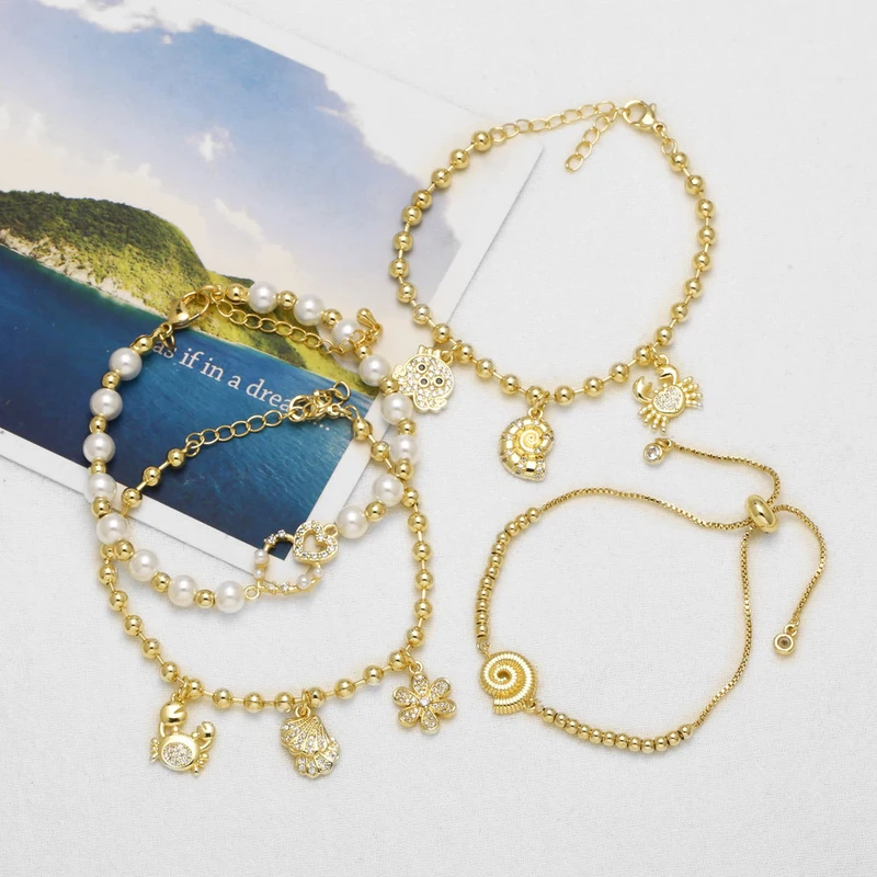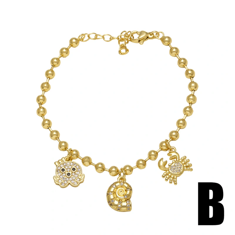 Pulsera con colgante de caracola y cangrejo, joyería artesanal, brb75