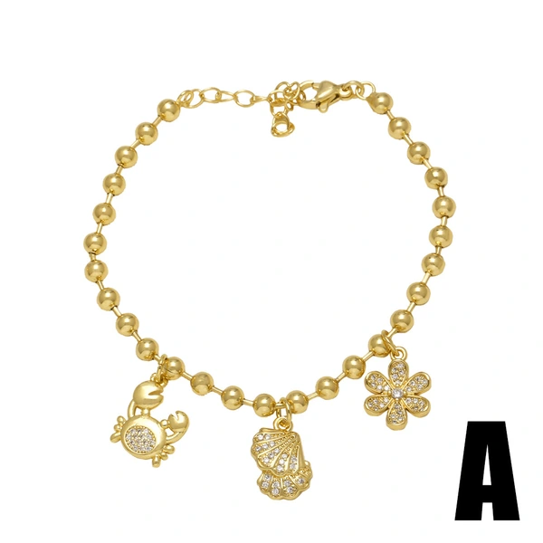Pulsera con 26 letras en inglés, ideal como joya, para mujer, chapada en oro, BRG78