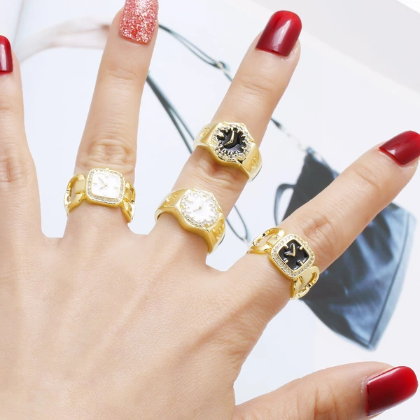 Reloj chapado en oro de 18 quilates, anillo abierto, anillo rip98, muy vendido como joya.