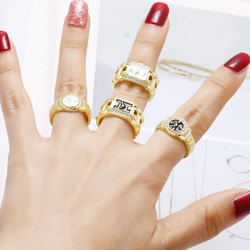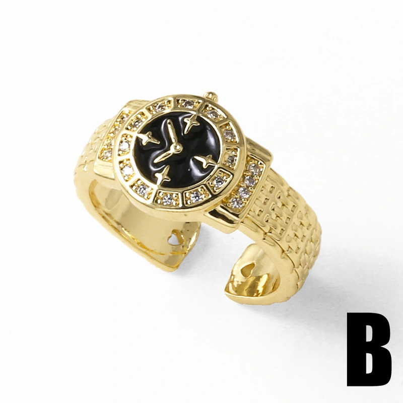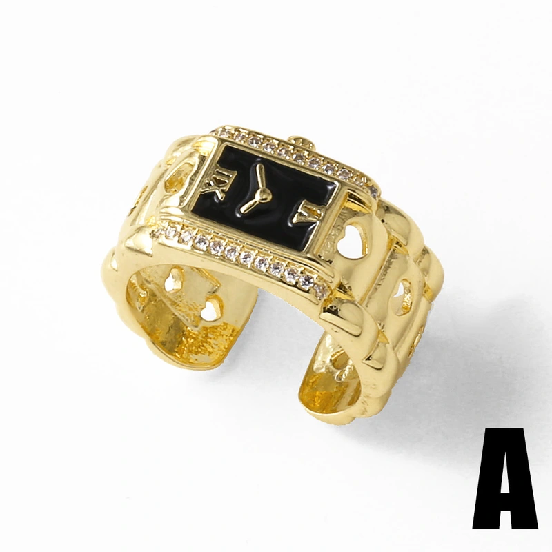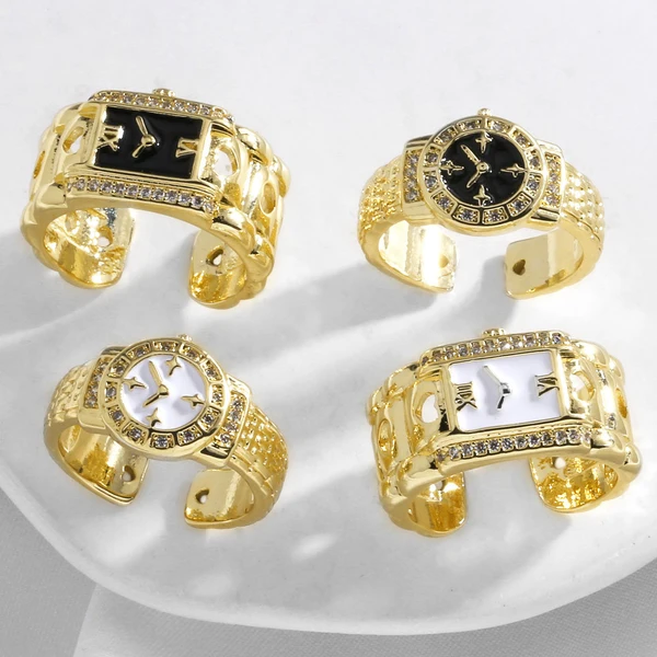 Reloj de oro de 18 quilates chapado en cobre, anillo abierto, anillo rin20, muy vendido como joya.