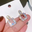 Venta al por mayor, pendientes brillantes con diseño cuadrado de gota de agua, pendientes ligeros de lujo, estilo a juego con el vestido.