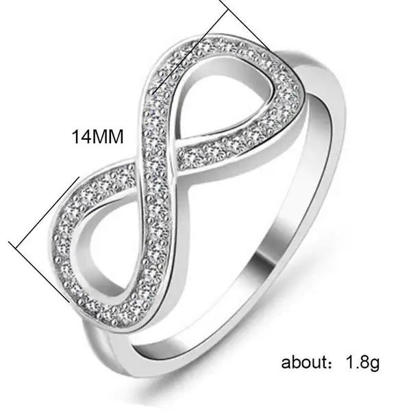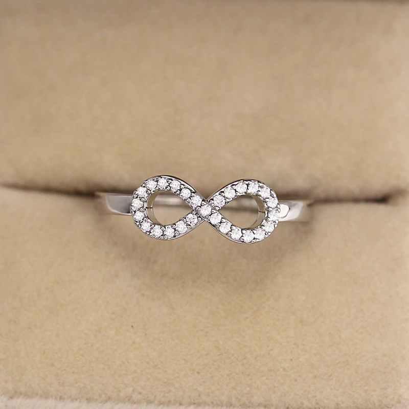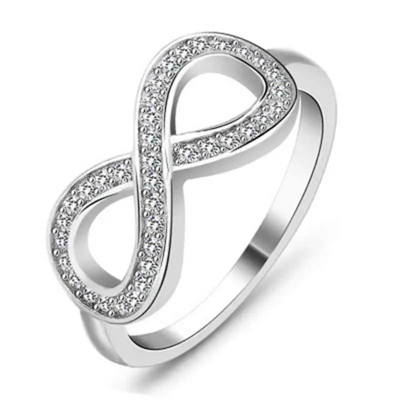 Venta caliente, joyería simple, anillo infinito en forma de 8, anillo de diamantes con personalidad exagerada, anillo de circonita con incrustaciones europeas y americanas, al por mayor.