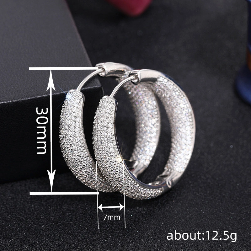 Venta directa de fábrica de pendientes de metal con microincrustaciones para mujer, diseño brillante y exquisito, círculo grande, estilo de lujo exagerado y ligero.