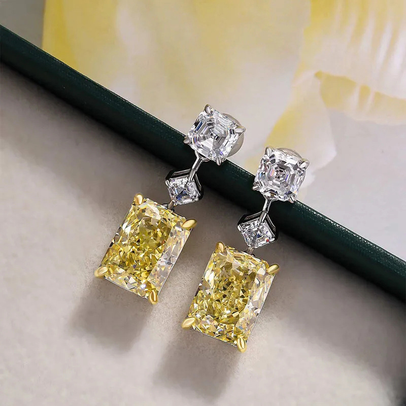 European, American and Korean rectangular earrings, quadrilateral light luxury square personality jewelry diamond high-end earrings