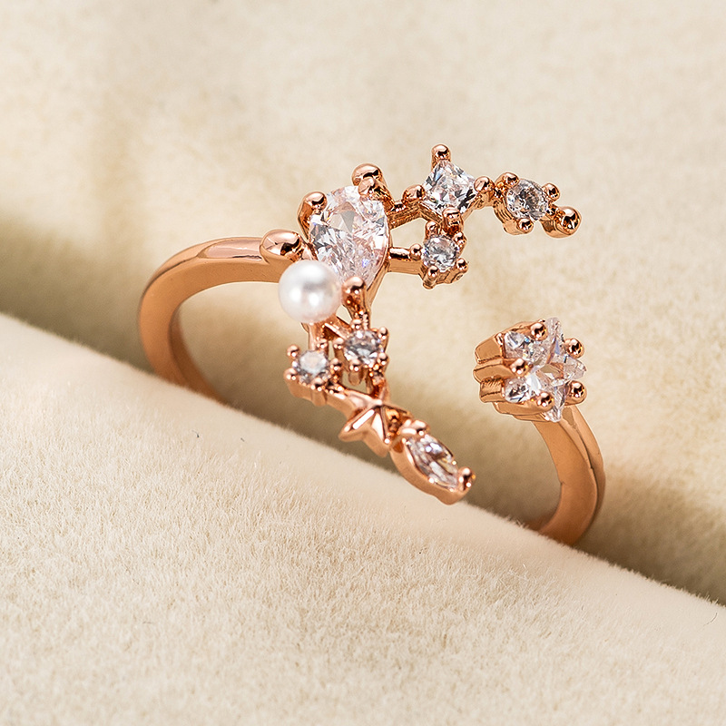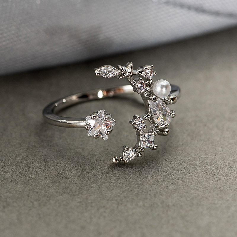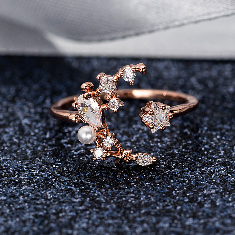 European and American accessories sweet cool style star moon ring light luxury women's ring copper jewelry