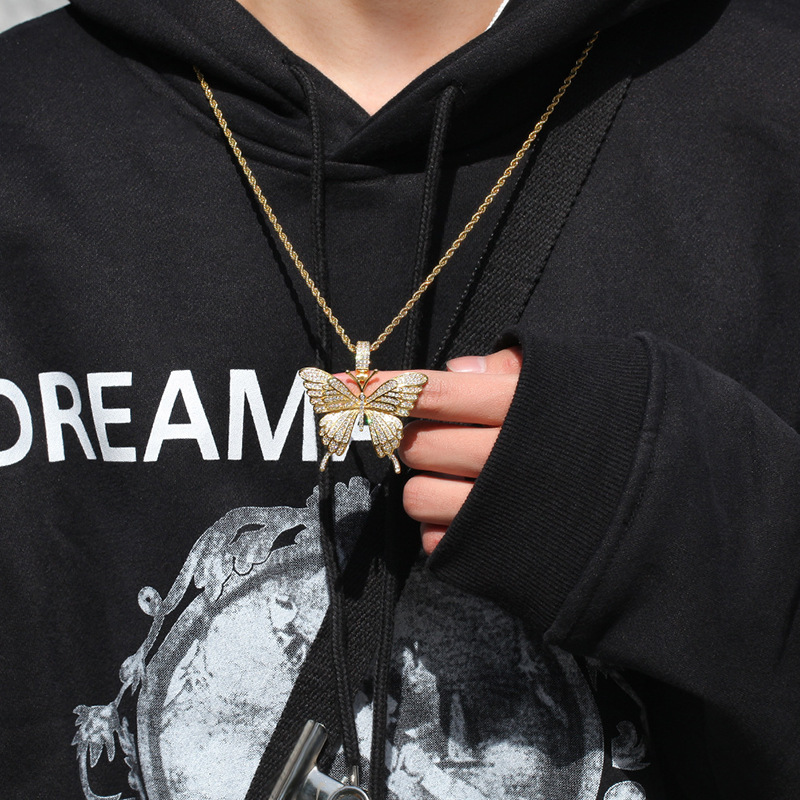 European and American all-match choker fashion butterfly necklace Internet celebrity hip-hop necklace micro-inlaid exaggerated necklace