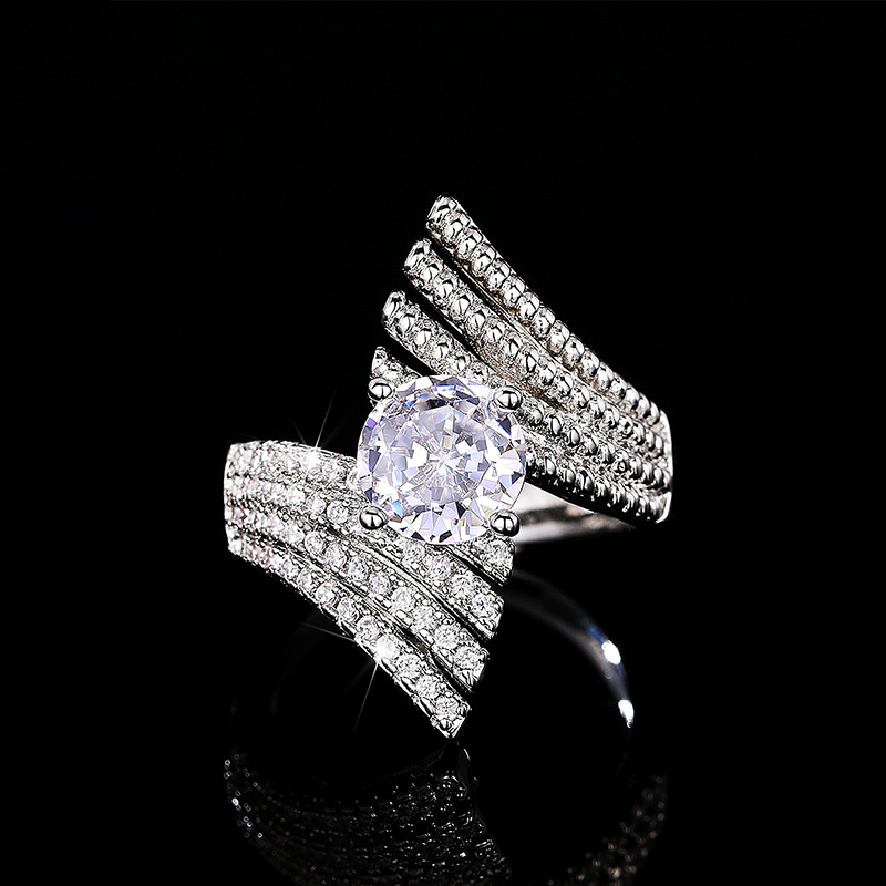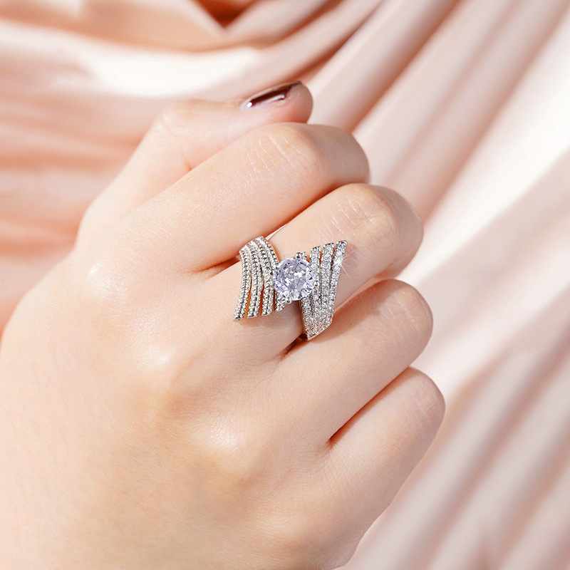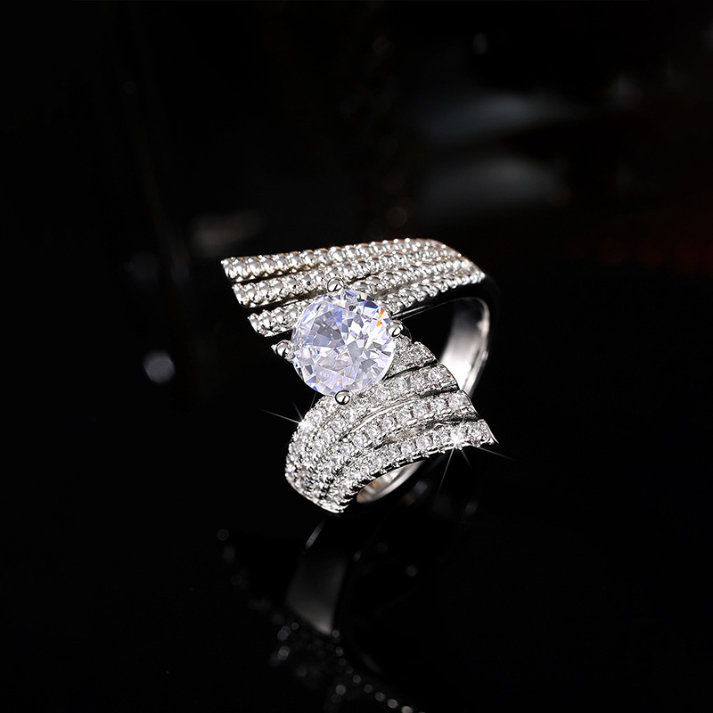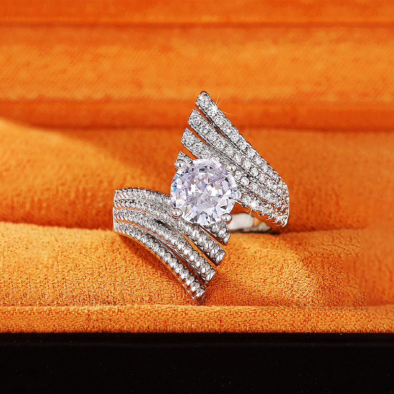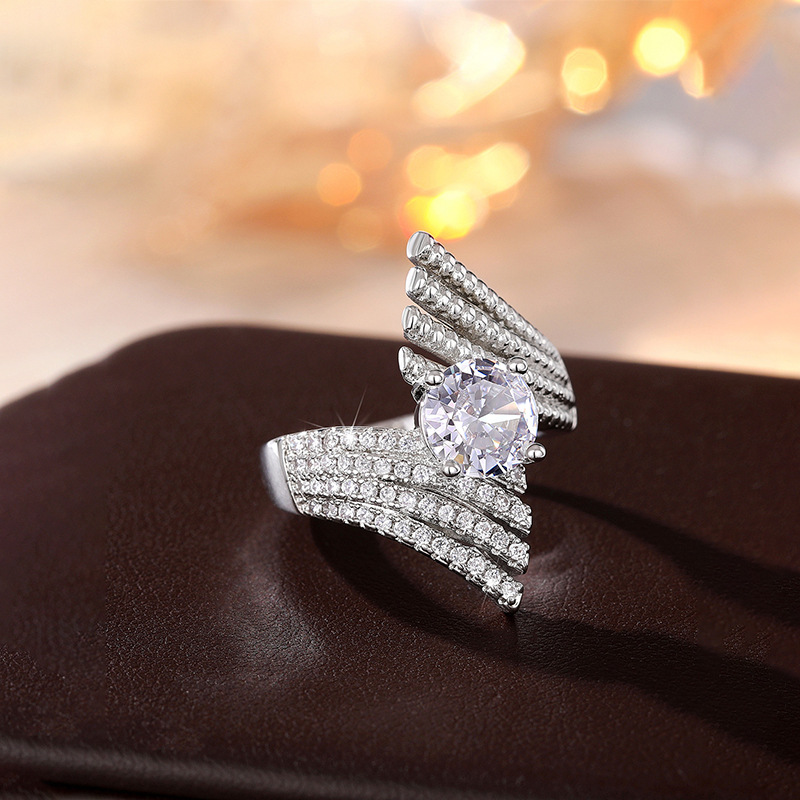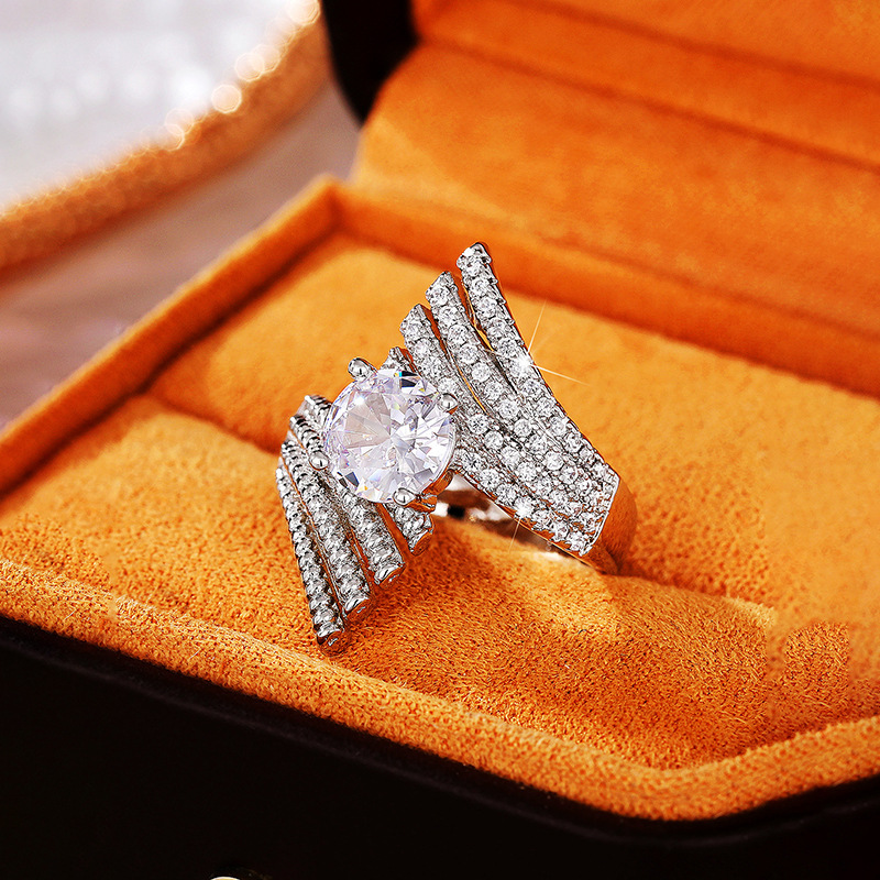 Micro-inlaid celebrity style classic all-match popular ring six-claw zircon wedding ring European and American style light luxury ring