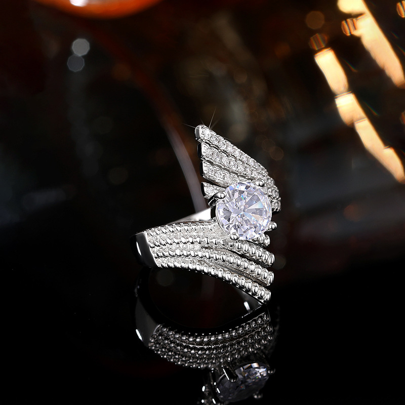 European and American angel wing ring dislocation design heavy luxury temperament ring domineering all-match symbolic ring