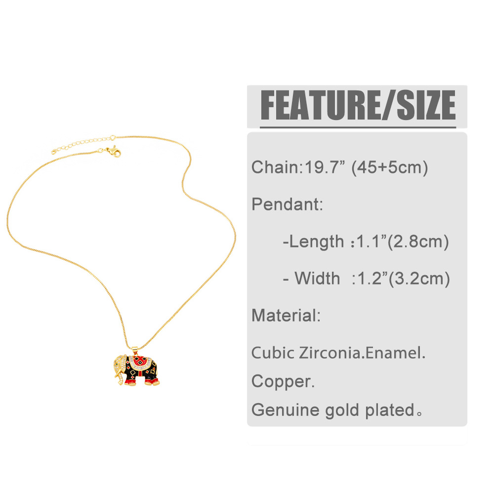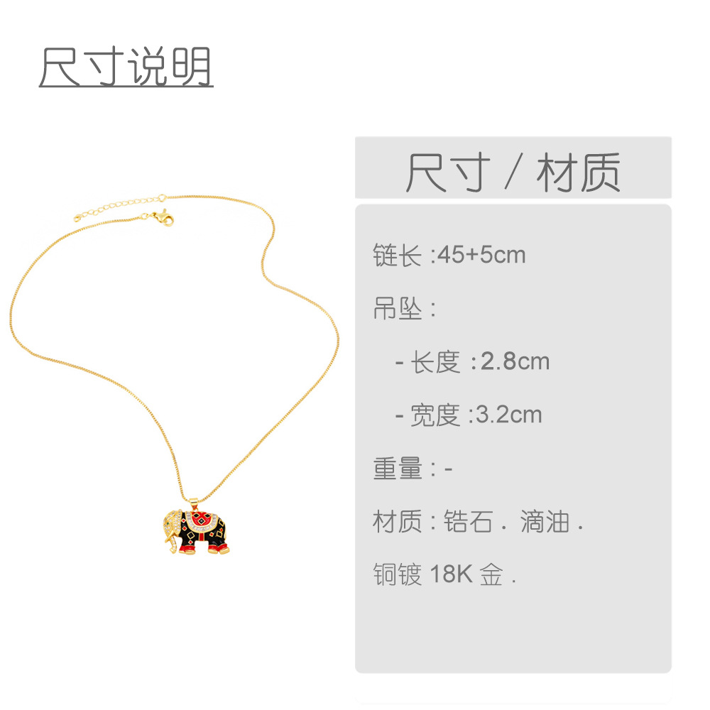 European and American autumn and winter all-match animal elephant pendant necklace style color oil drop lucky elephant necklace nkb585