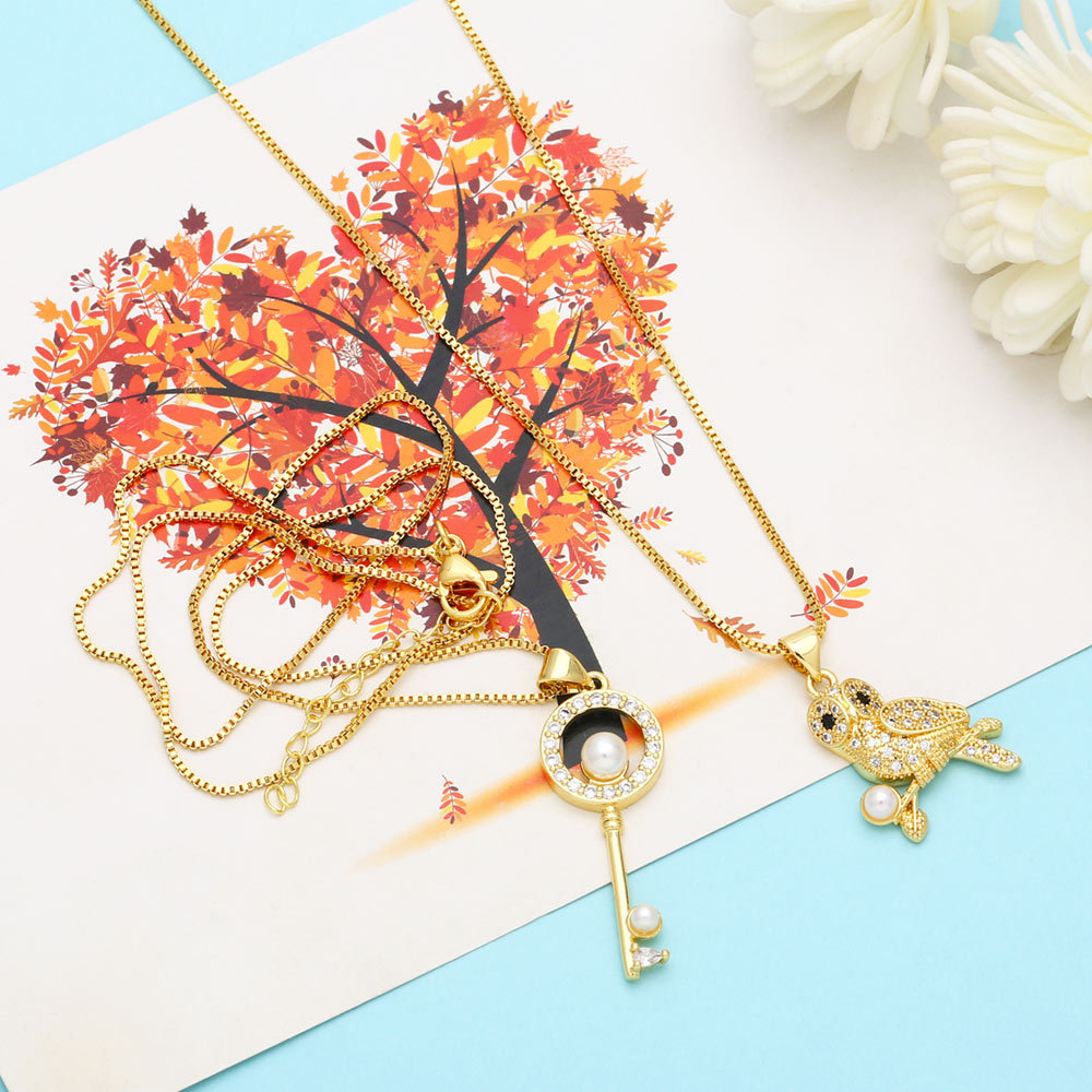 European and American autumn and winter new simple pearl key necklace sweater chain European and American fashion all-match clavicle chain nkb544