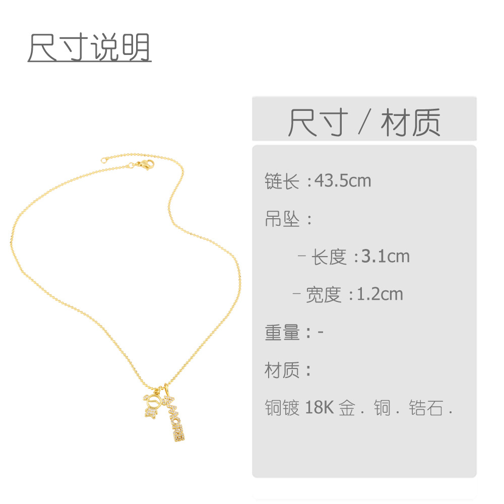 AS jewelry 26 English letters necklace female copper plated real gold inlaid zircon clavicle chain nky42