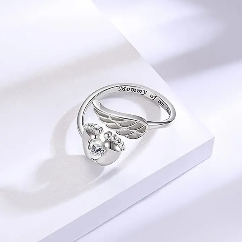 European and American baby footprint ring angel engraving popular jewelry mother gift fashion design