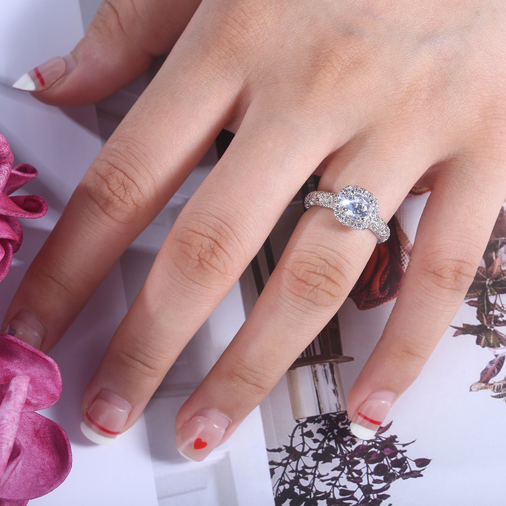 Micro-inlaid celebrity style classic all-match popular ring six-claw zircon wedding ring European and American style light luxury ring