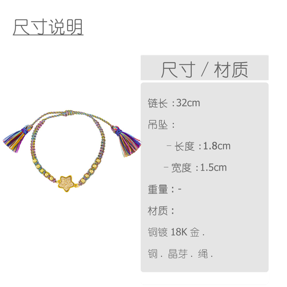 European and American Bohemian color bracelet female braided rope crystal five-pointed star ethnic style pull-out bracelet bre64