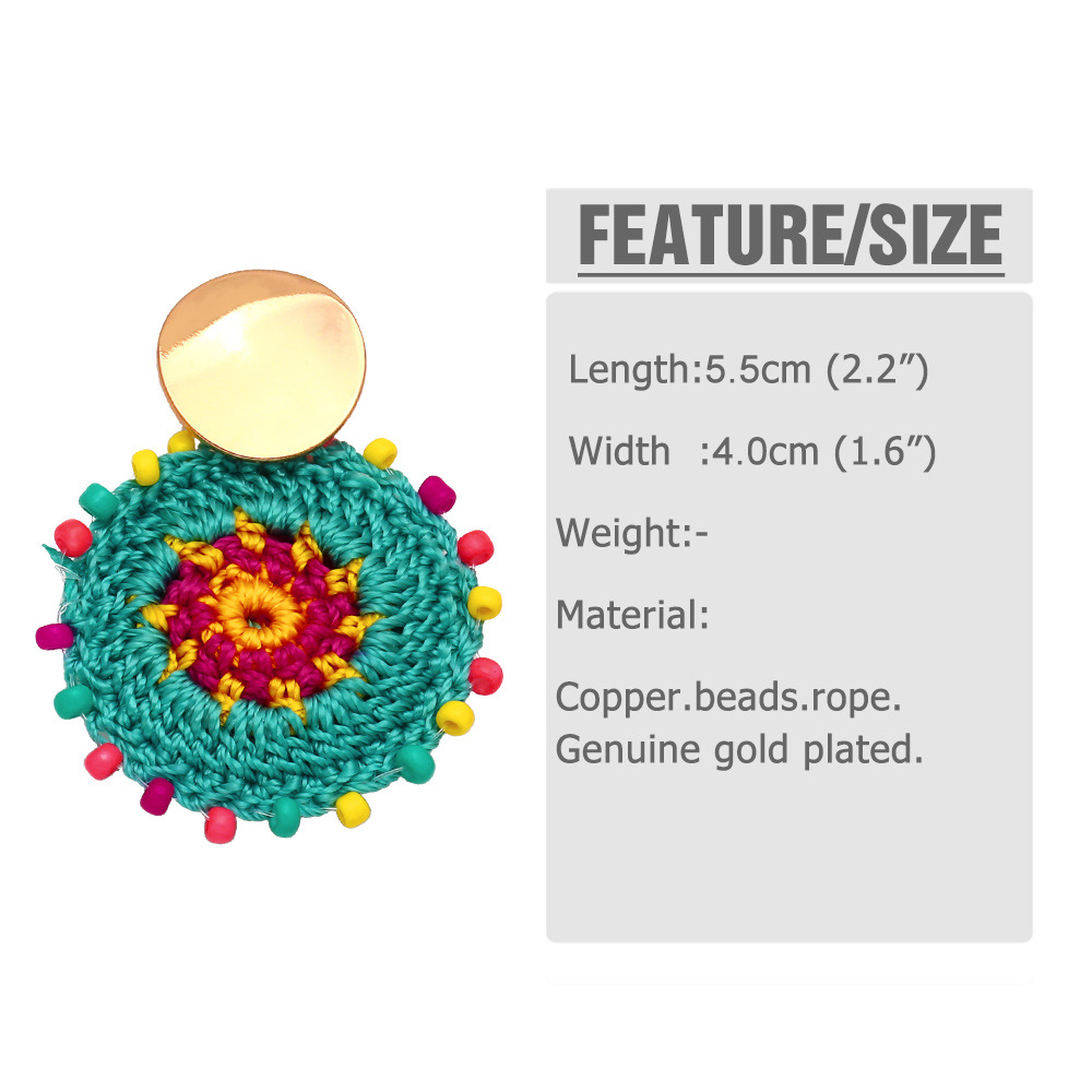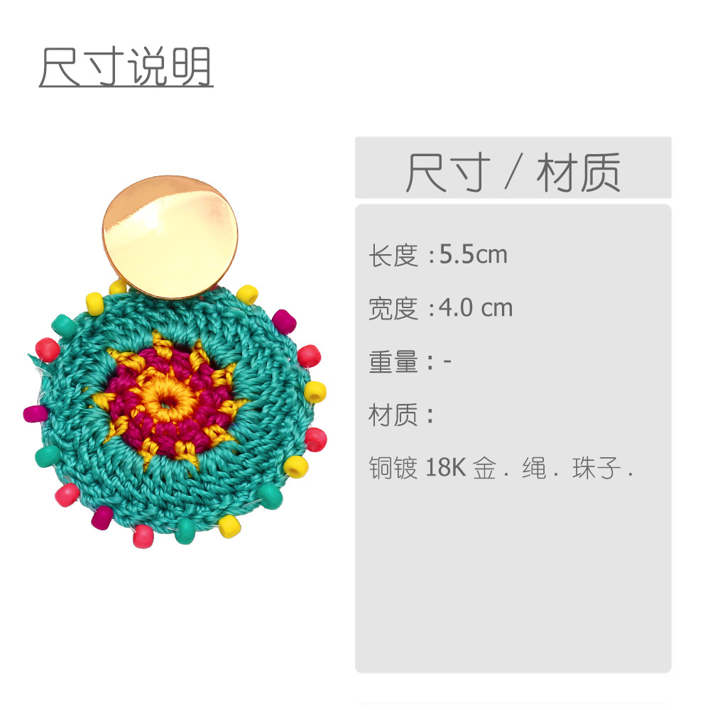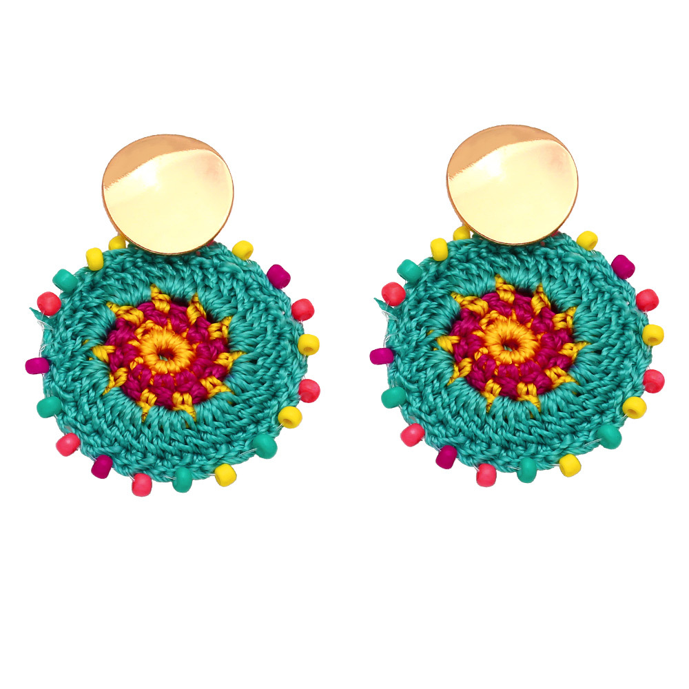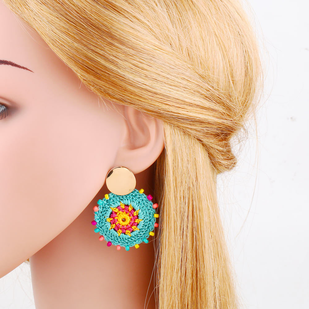 European and American Bohemian ethnic style niche design hand-woven cotton rope round flower earrings female era306