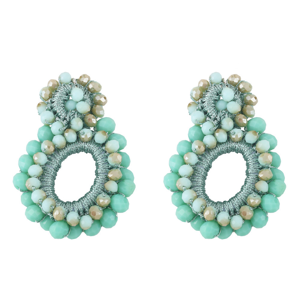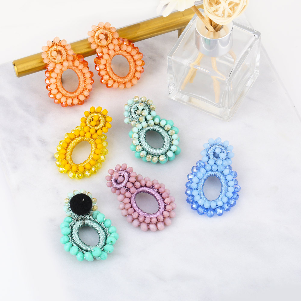European and American Bohemian geometric round water drop rice bead earrings creative personality woven earrings jewelry ery17