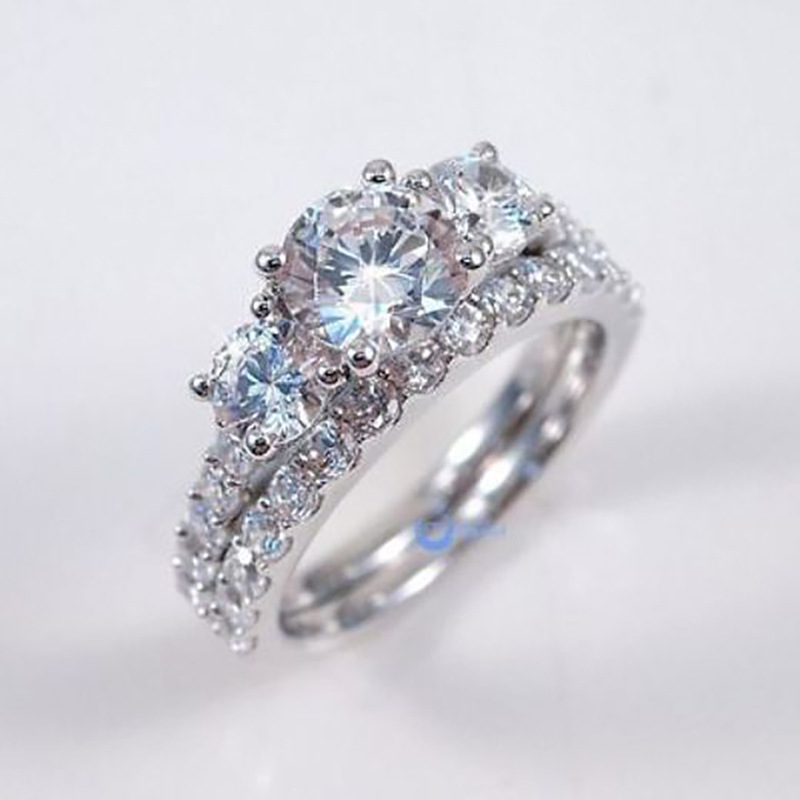 European and American celebrity high-end rings round zirconium super shiny couple rings European style palace style rings for women
