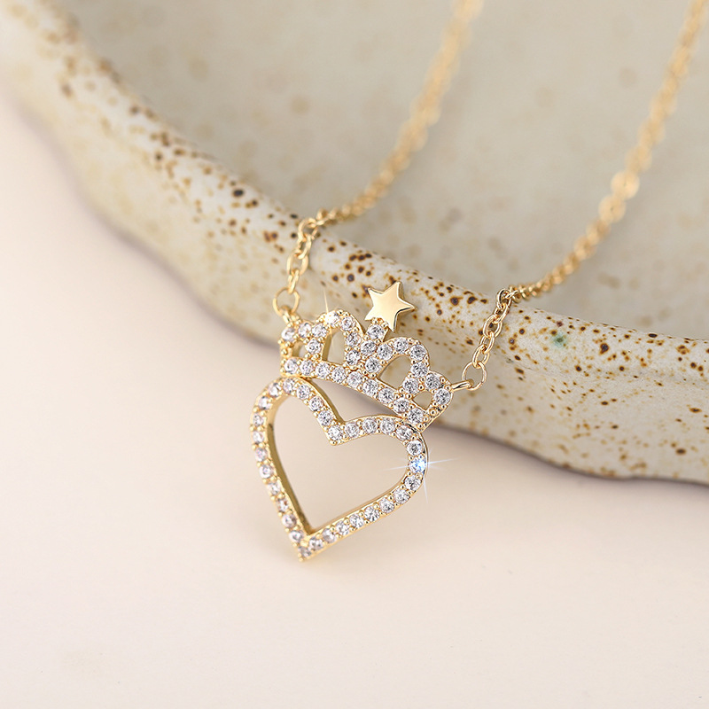 European and American celebrity love necklace female crown star design necklace niche personality Internet celebrity style jewelry