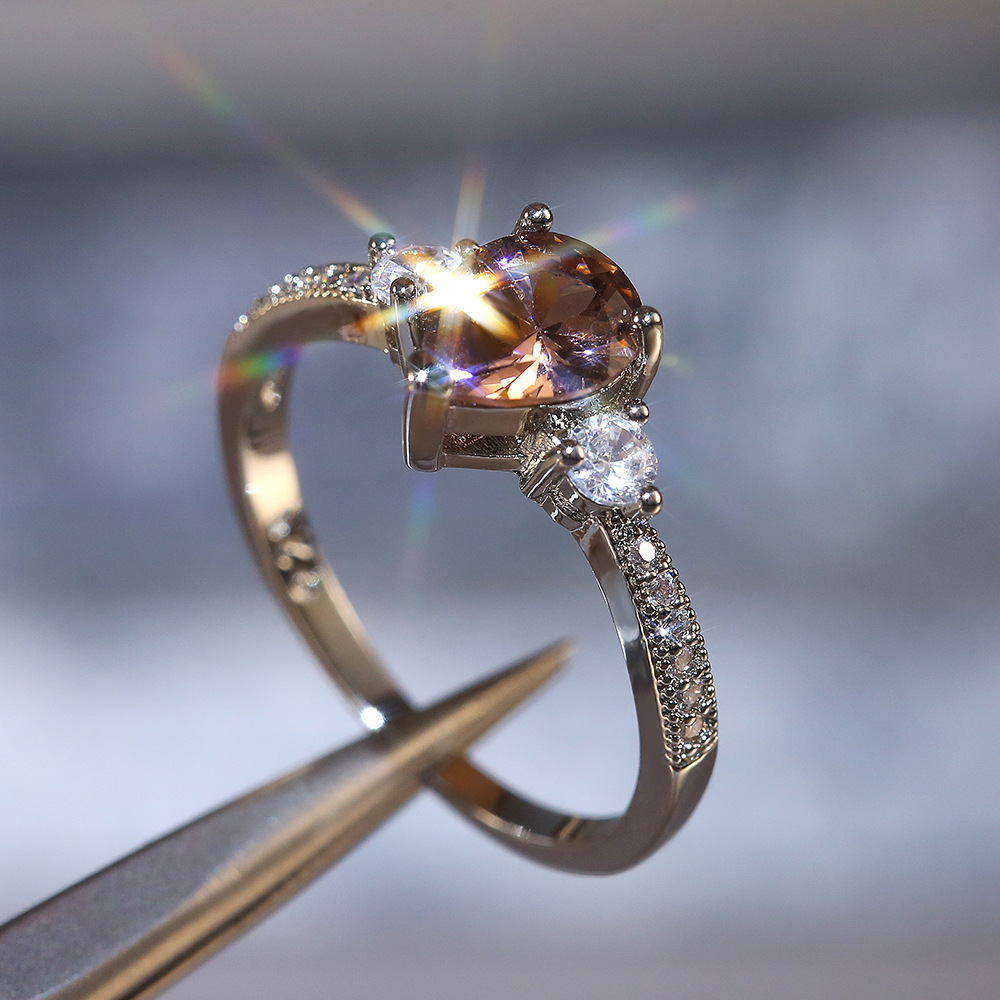 European and American classic jewelry hot sale fashionable brown teardrop ladies ring hand jewelry wholesale