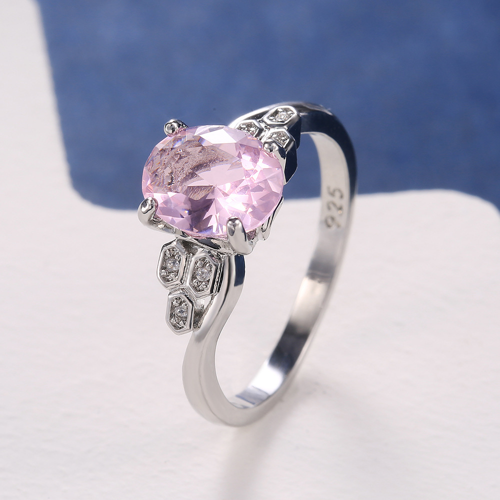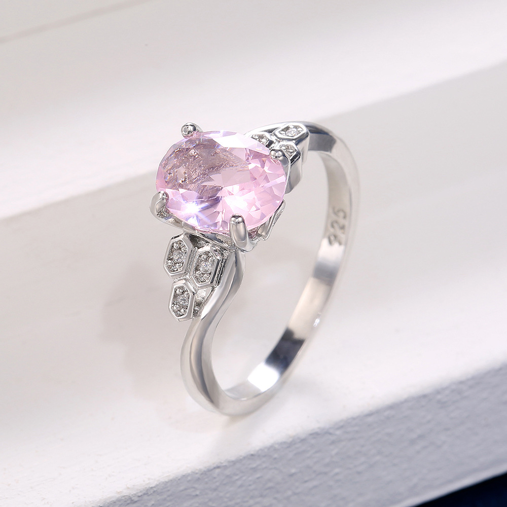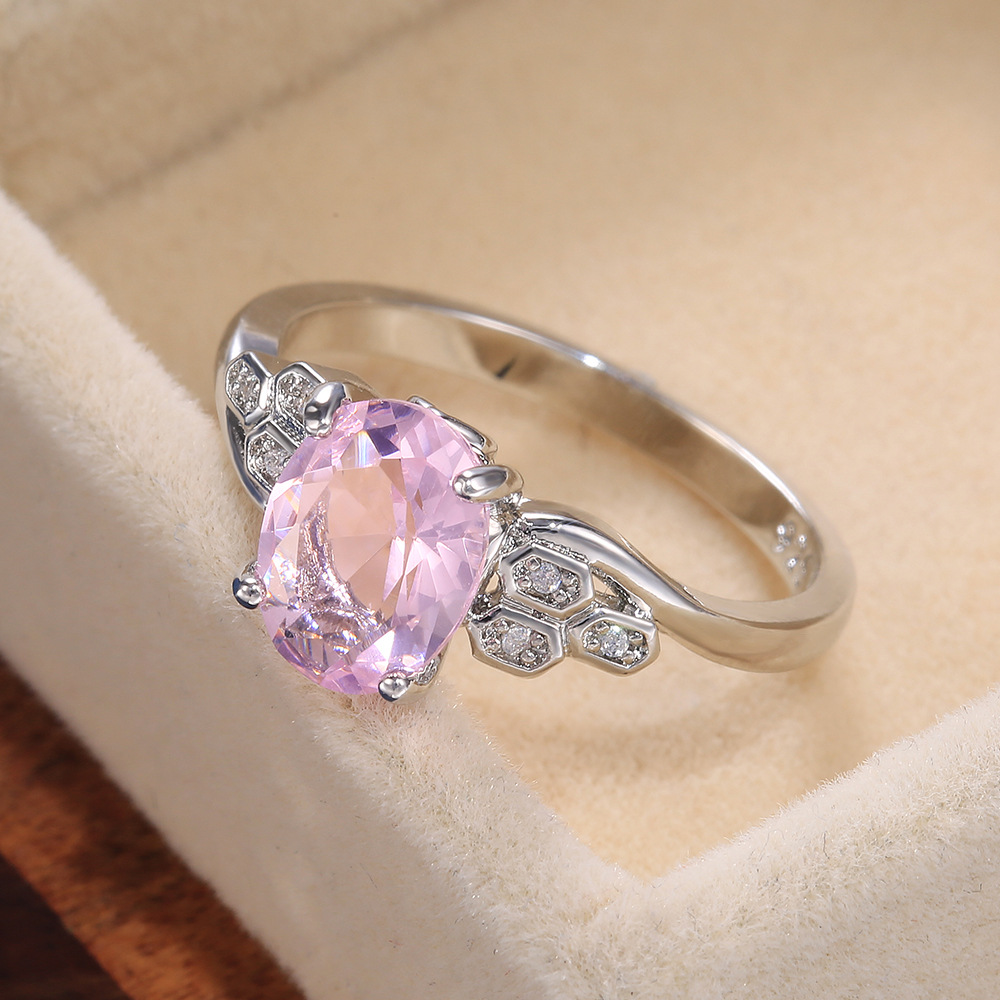 European and American classic jewelry hot sale fashionable pink zircon women's ring hand jewelry wholesale