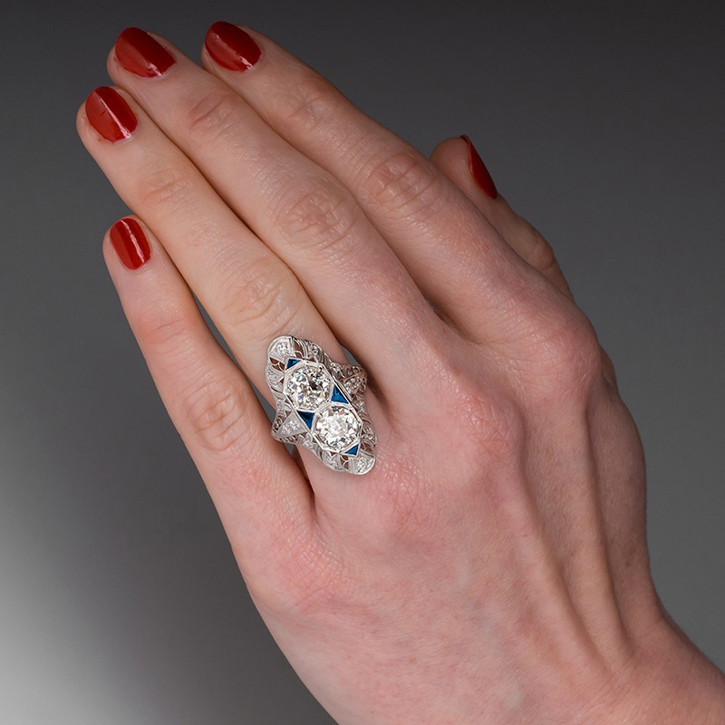 European and American classic luxury ring female geometric inlaid zircon ring high-end banquet fashion single ring