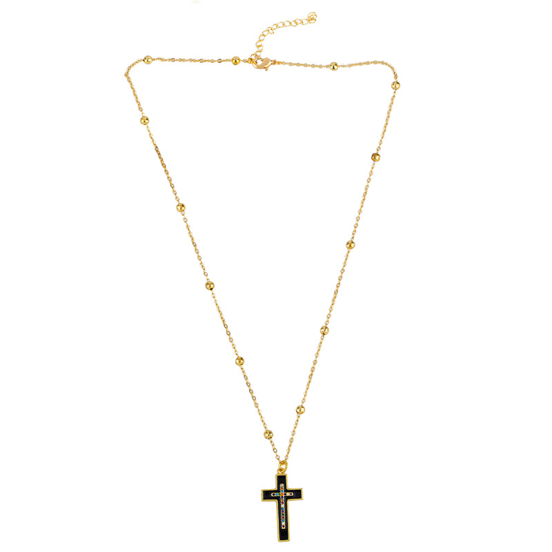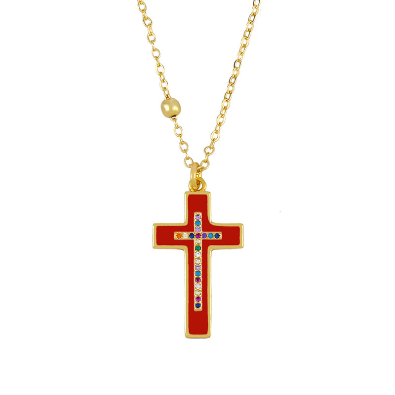 European and American classic retro cross necklace oil drop inlaid with colored diamond cross pendant men and women couple necklace nkq07