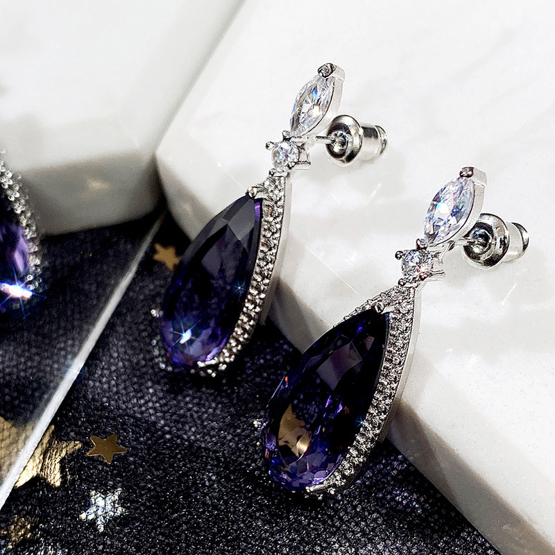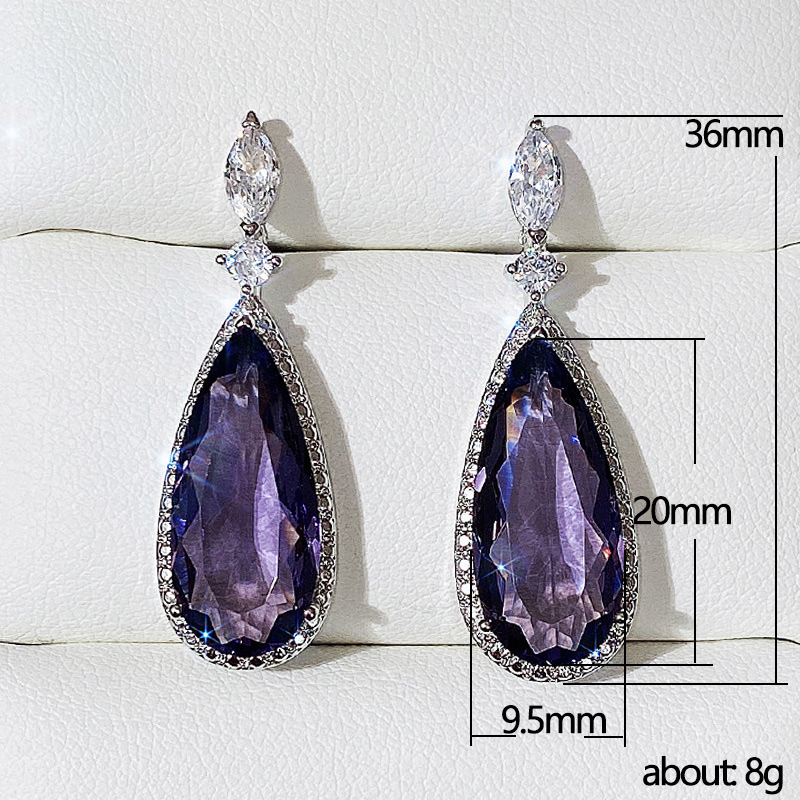 European and American classic teardrop earrings micro-inlaid purple zircon long earrings female bridal earrings evening accessories