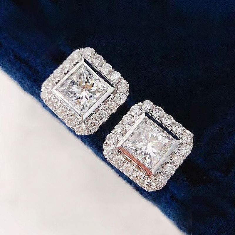 European and American classic women's geometric square diamond zircon earrings best-selling jewelry