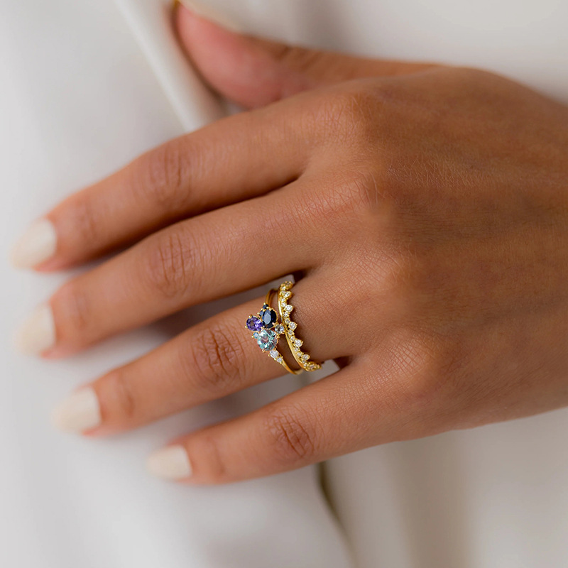 Small crown luxury French hot-selling water drop special flower floral ring temperament princess index finger ring