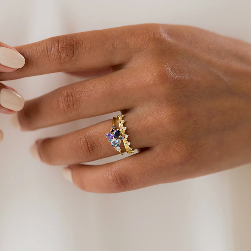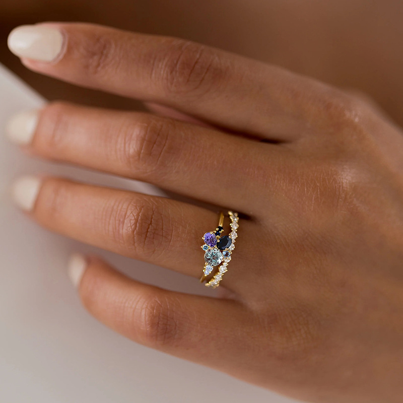 European and American colorful geometric couple rings, fashionable niche personality wedding rings, exquisite and elegant wedding light luxury style