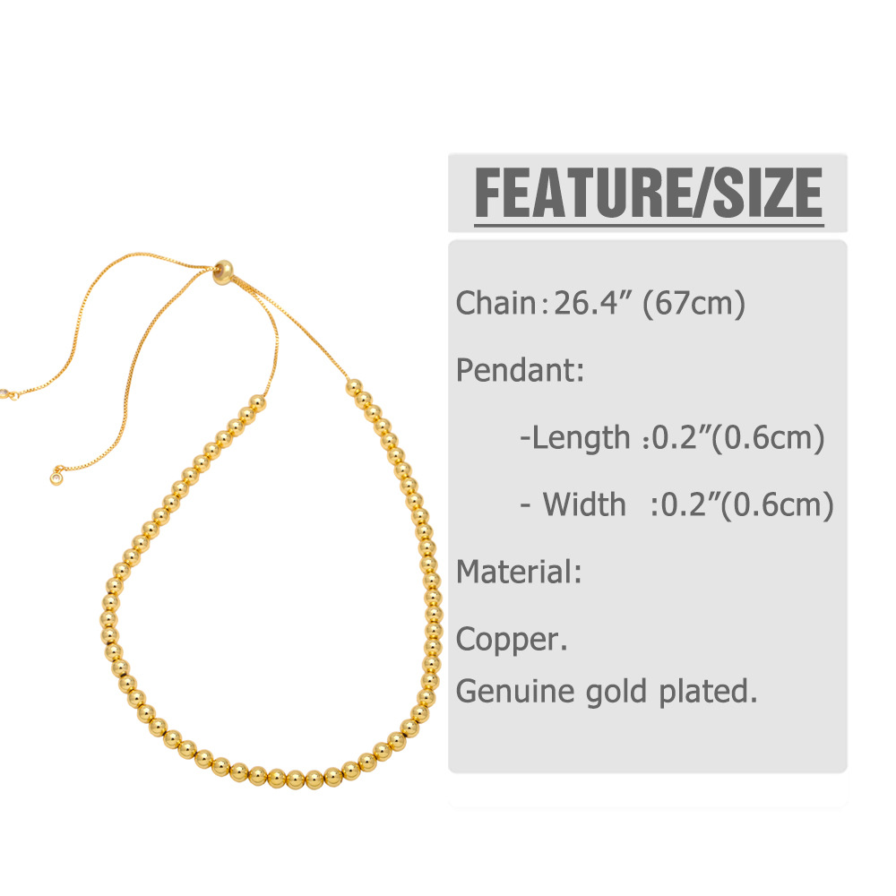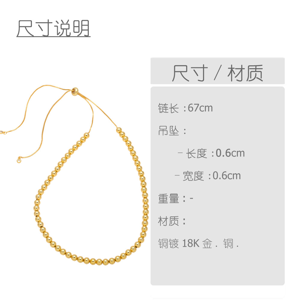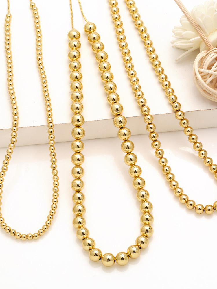 European and American copper beads personality beaded 18K gold necklace hip hop simple fashion round necklace accessories nka052